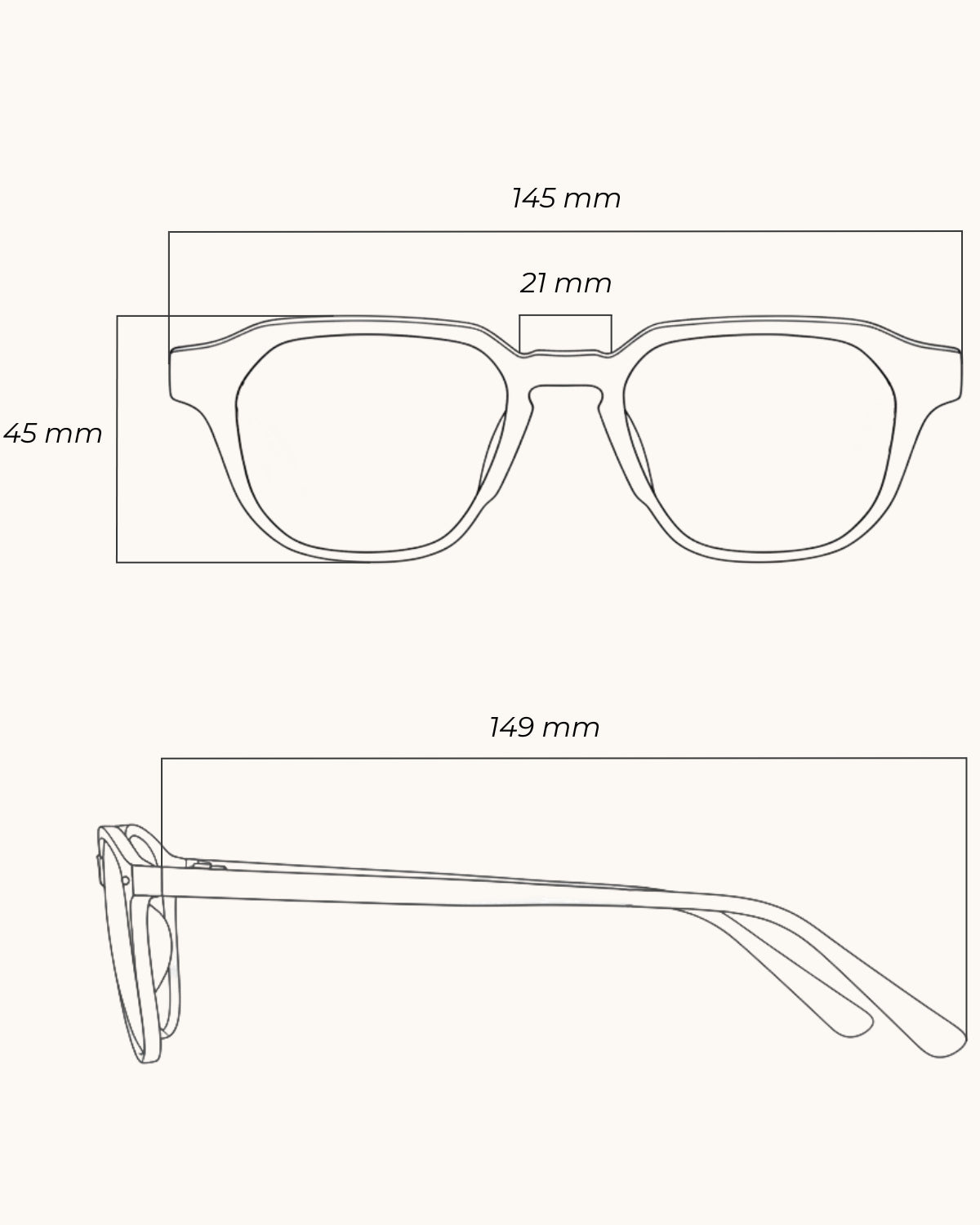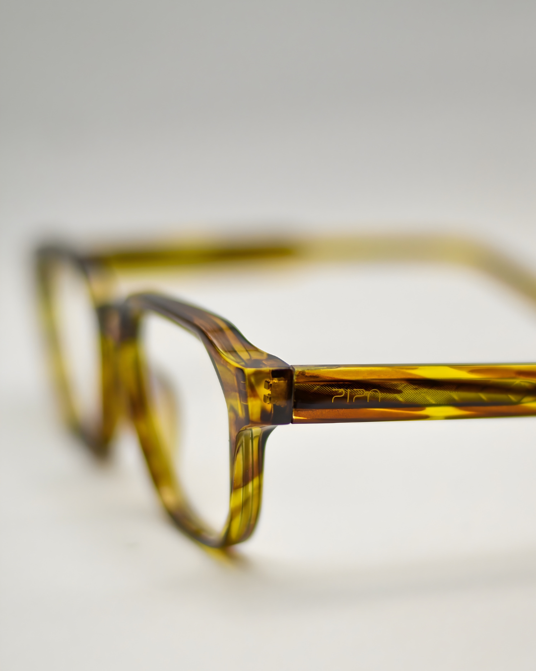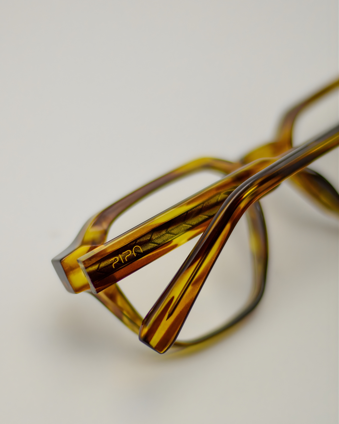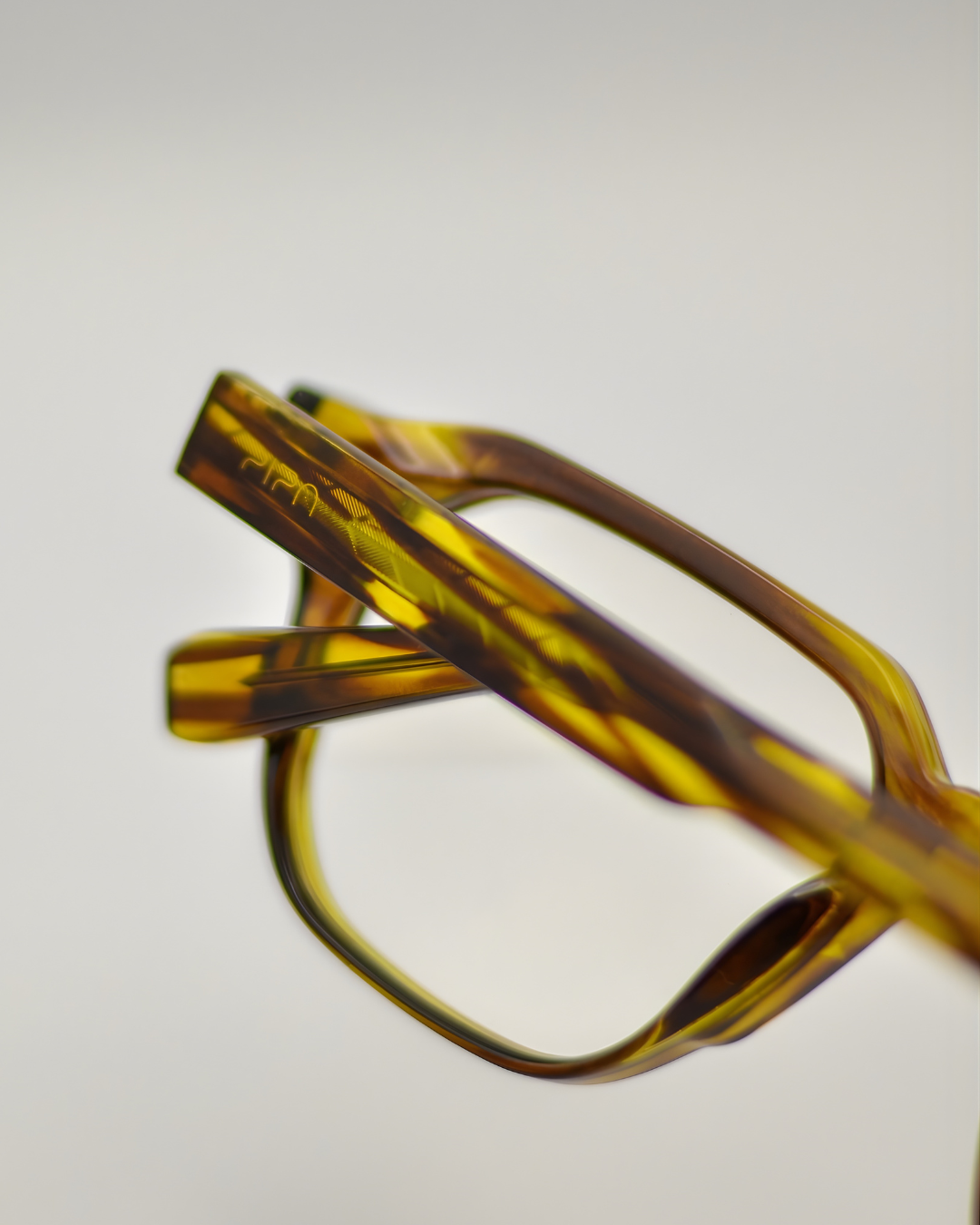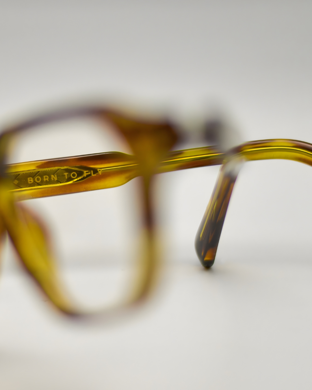 Armação tartaruga claro em nylon leve e resistente. As hastes mais robustas possuem agulhas internas e charneiras reforçadas, que permite mais conforto e estabilidade no encaixe do rosto. O formato frontal retangular, com traços retos e cantos arredondados, carrega um desgin contemporâneo e único para o modelo.